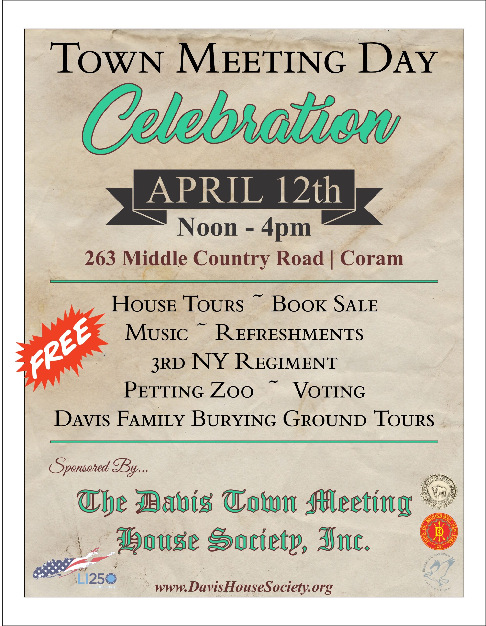 The Lester H. Davis House, circa 1750, is located at the junction of Middle Country Road and Coram-Mount Sinai Road in the hamlet of Coram, New York. The Lester H. Davis House (historically known as the Davis Town Meeting House) is owned by the Town of Brookhaven. Completion of the interior of the Davis House is currently under way and has been a multi-year effort due to the extensive scope as well as the financial demands of the work needed. Your tax deductible donation is always greatly appreciated.